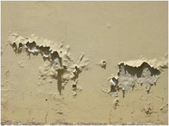 damp-proofing, due to faulty design or construction. This allows moisture to enter the building, often resulting in decorative spoiling (such as paint blisters or flaking) and an unpleasant "musty" smell.