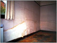- Where a wall has been built against the ground (e.g. when building into a hillside) without adequate damp-proofing (lateral damp)